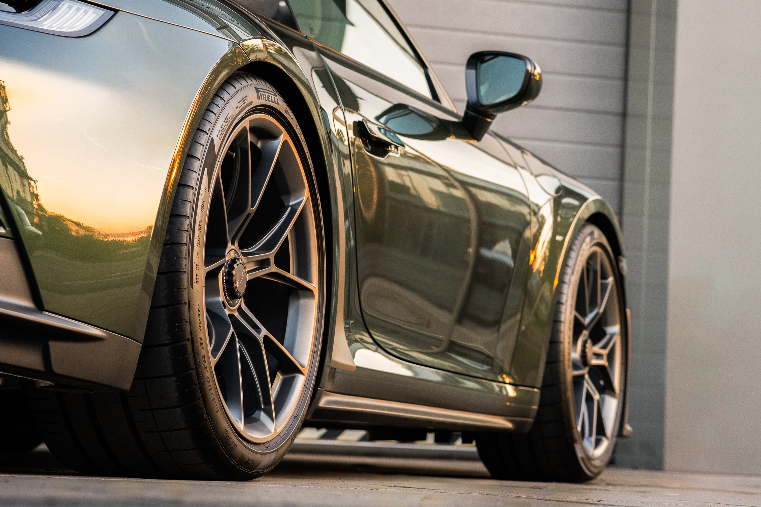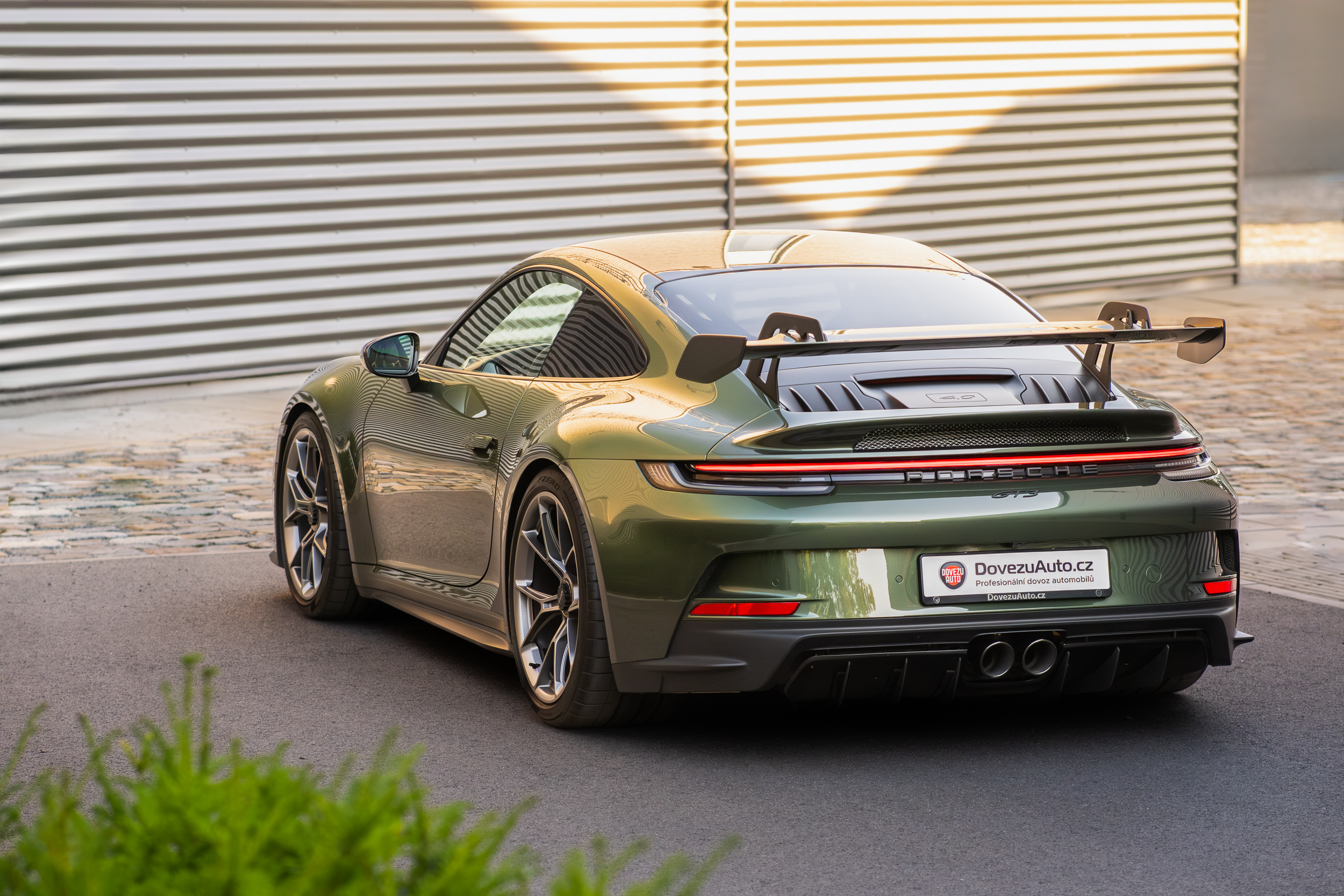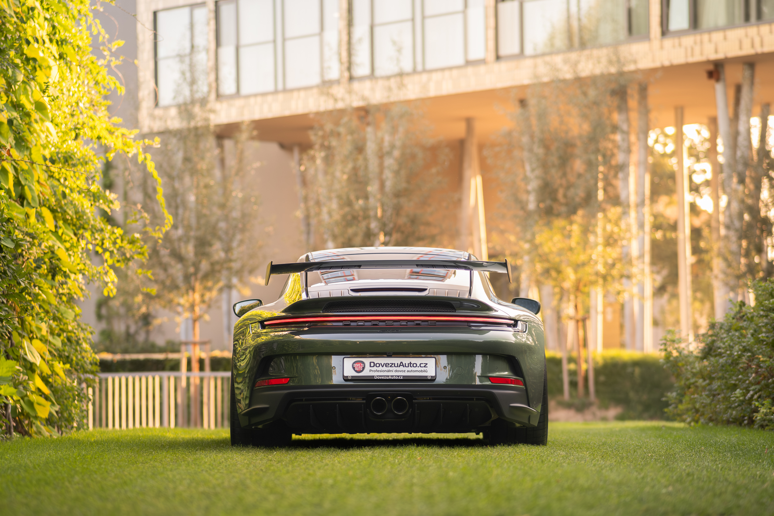 The 911 992 GT3 model in the color version with the traditional exclusive Oak Green metallic from 1976 blends two worlds, the world of dynamics and the world of elegance.
